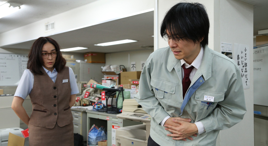 Mocked by everyone in Tokyo (including TV commentators who seem able to look directly into his box apartment), Ryuichi’s lone ally is fellow office misfit, Yuko (a buttoned-down, adorable Aso).