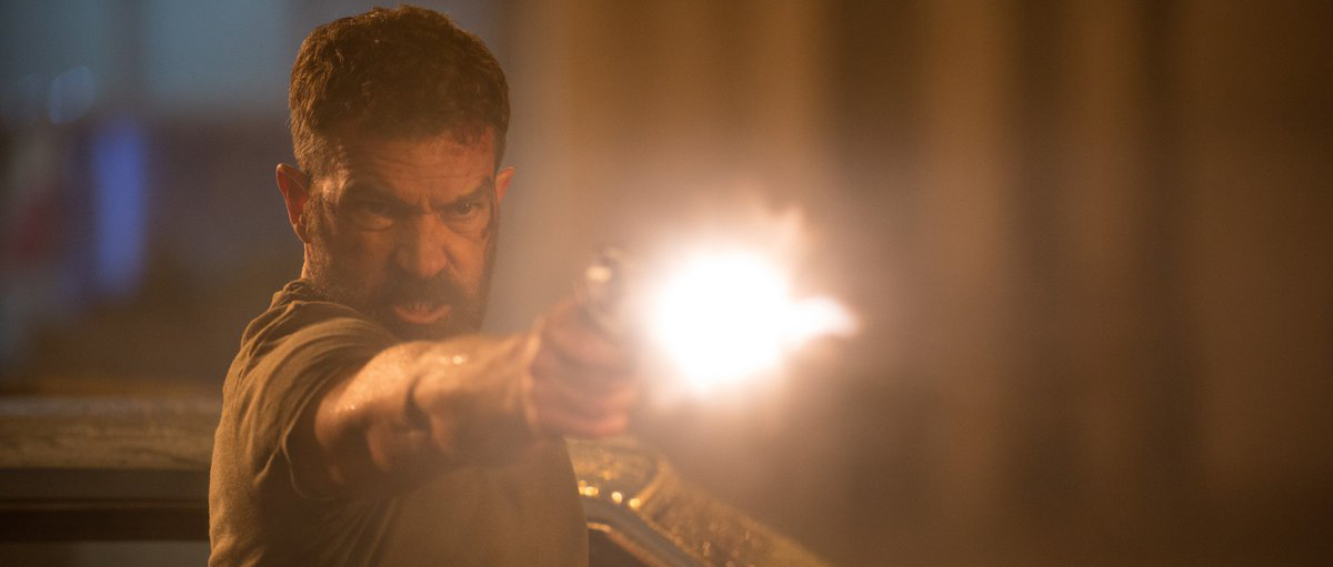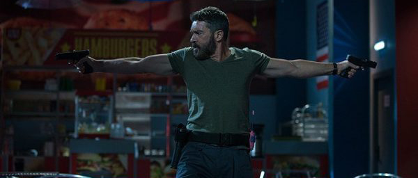 Banderas brings his usual smouldering intensity and wry-smile charm to John McClane clone “Eddie” Deacon. Whether pep-talking mall cops as the bad guys storm the barricades, sparring with Mafia target Jamie (de la Rocha) in scenes coincidentally reminiscent of Logan, or doing that cruciform gunplay thing from Desperado, he reminds us why action cinema is better with him around.