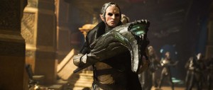 Shame then that his adversary, Dark Elf leader Malkeith (Eccleston), isn’t given decent shading; his violent quest for the plot’s Macguffin, the volatile substance Aether, casts him as a ticked-off terrorist. Saddled for most of the movie with subtitles and an implausible French plait, Eccleston doesn’t fill the Big Bad void sufficiently and we are left looking elsewhere for malevolent thrills.